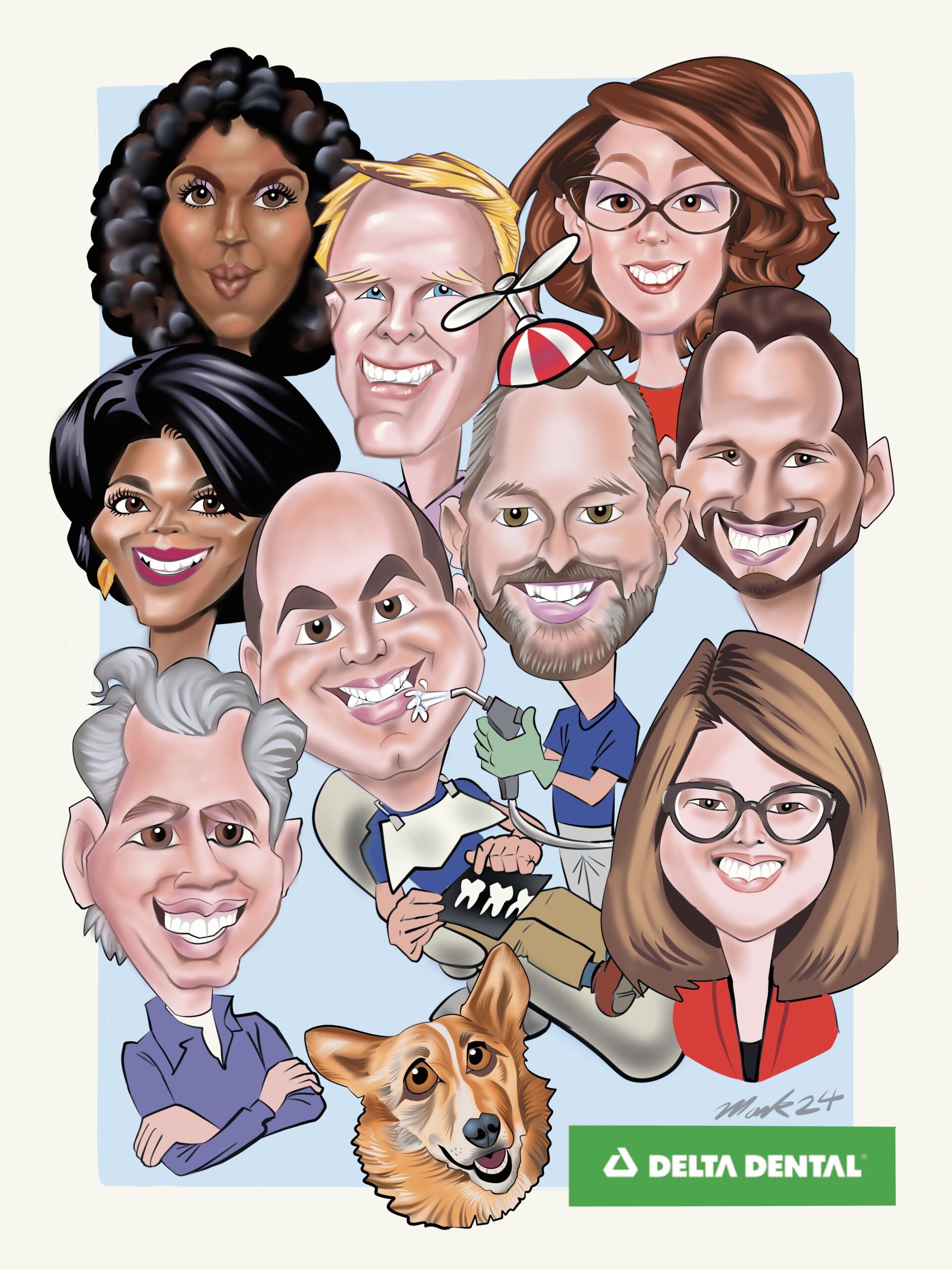 Browse our website to view just a small sample of Mark’s work, and contact us today to learn more about our caricatures from photos and group caricatures in Colorado!