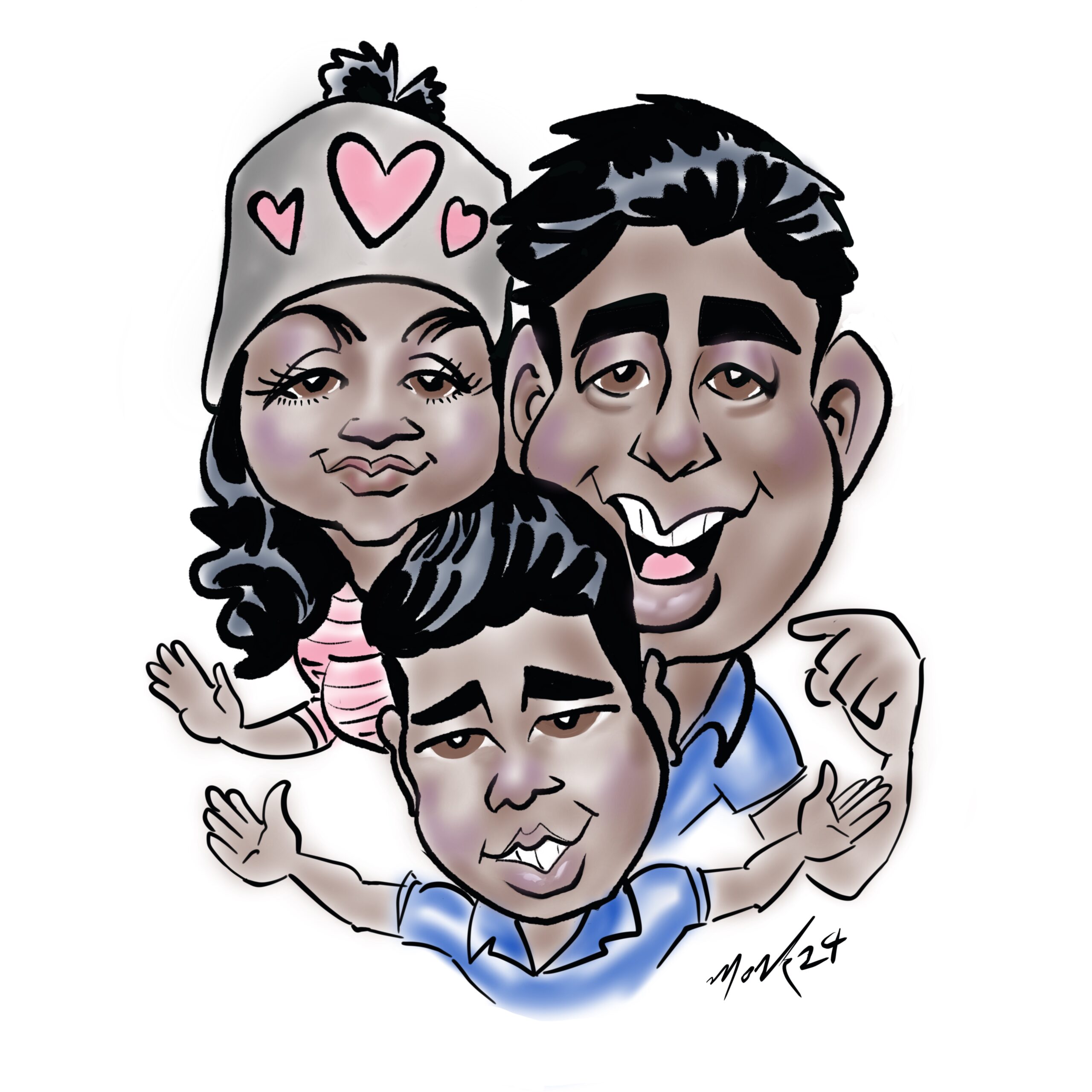If you are interested in just one digital caricature you can purchase. Try our digital caricature drawing in our online shop. You will need to register an account to order online. For digital drawings select “Digital /Full Color” under Media* after clicking “Select Options” on one of the shop pages.