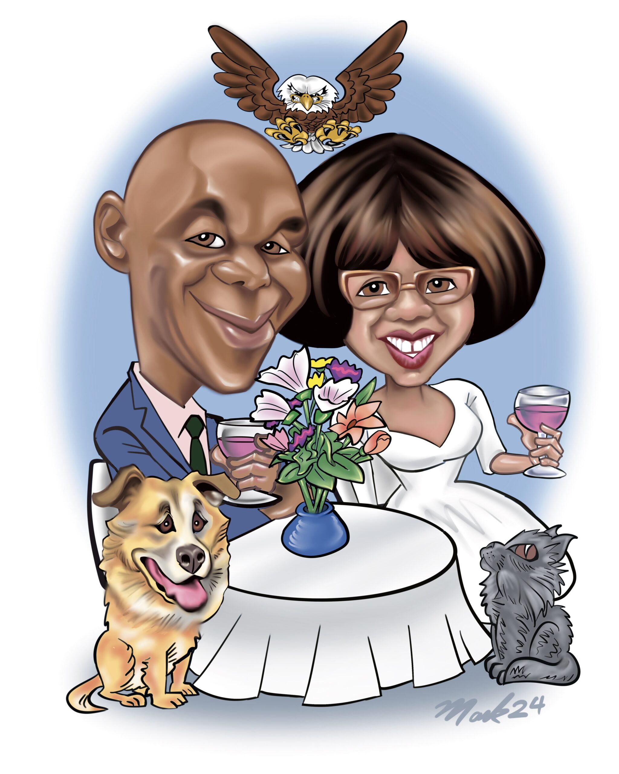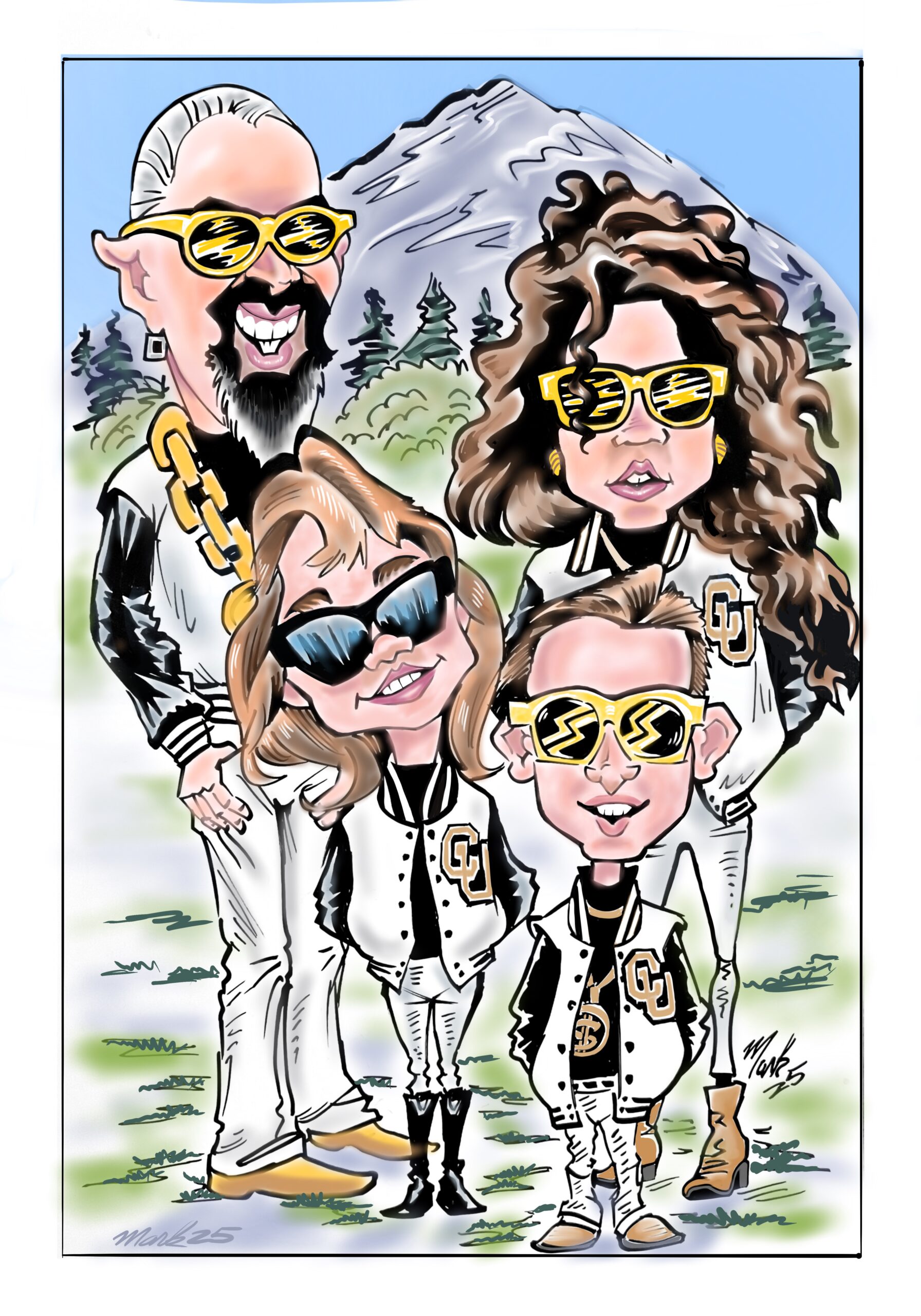 Using the technology of today, Mark Hall can create a one of a kind caricature drawing like you’ve never seen before. Whether you would like us to recreate a family photograph or transform you and your friends by using a fun theme, we know you will be impressed by our digital drawings. Mark Hall has decades of experience creating caricature art, and digital drawings are just one of many tools that he employs in order to create high-quality, visually stunning artwork. Of course, like all of our caricature art, our digital drawings are unique pieces that are handcrafted by Mark himself.